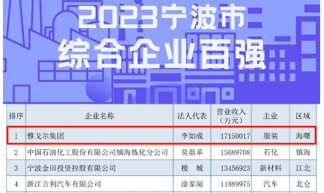 2023寧波綜合企業百強榜發布:雅戈爾連續第三年蟬聯第一!