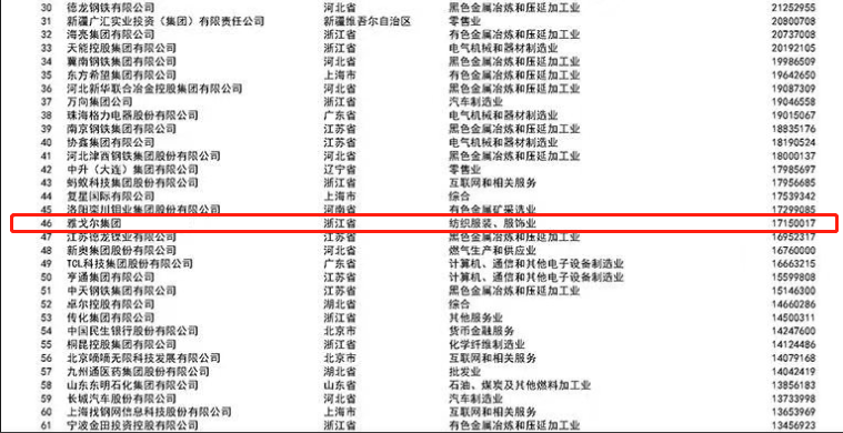 2023中國民營企業500強榜單發布,雅戈爾集團位列第46位,上升6位!